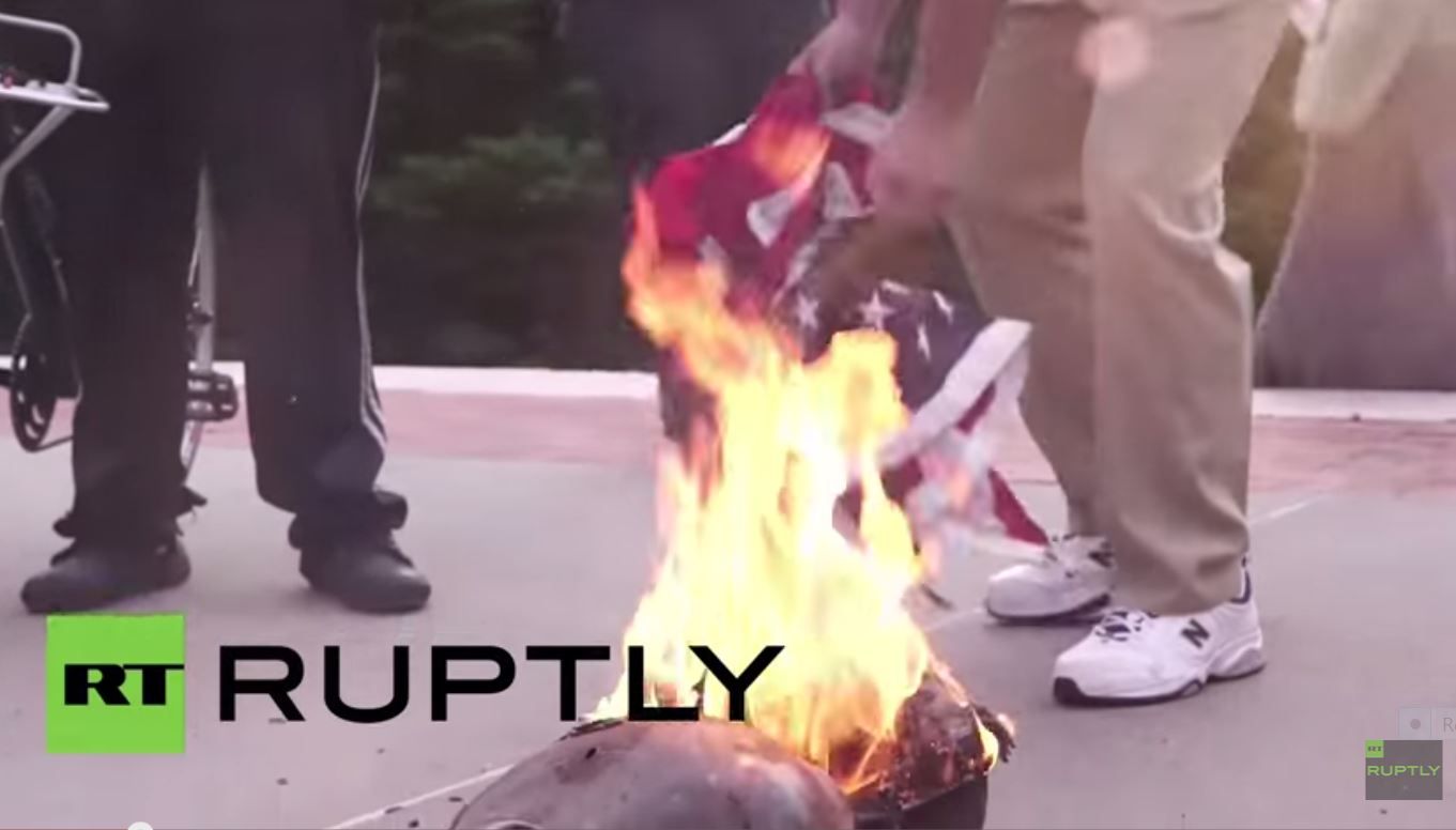 The flag-burning protesters, from the anti-police brutality group Disarm NYPD, took to Fort Greene Park on Wednesday evening and placed the Confederate flag in a barbecue pit. But when they began burning the American flag, bystanders, veterans and a biker group aggressively intervened and violence broke out, according to the New York Daily News.