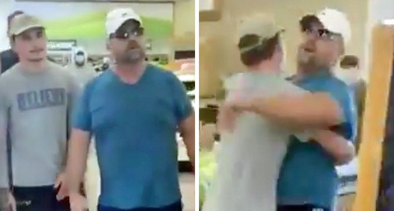 "I'll beat that f*cking mask off your face," he threatened, as his son physically picked him up and removed him from the store. "F*cking p*ssies, you're all a bunch of p*ssies wearing masks!"