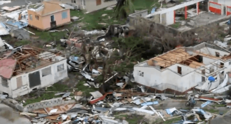 Screengrab of Prime Minister Gaston Browne's arial survey of Hurricane Irma's impact on Barbuda, via ABS Television and Radio.