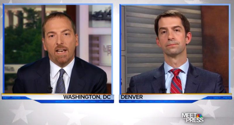 Meet the Press host Chuck Todd and GOP Sen. Tom Cotton -- (NBC screen grab)