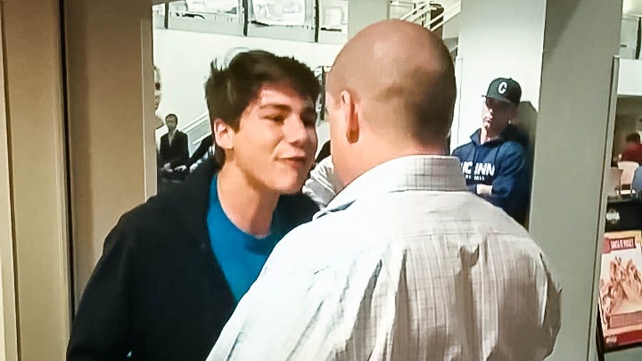 Several minutes later, cafeteria staff decides they have taken enough abuse after Gatti pushes the manager again. A chef and the manager force Gatti to the floor as police officers arrive.