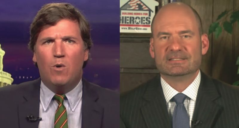 Fox News host Tucker Carlson (left) and Democratic operative Chris Hahn (right). Image via screengrab.