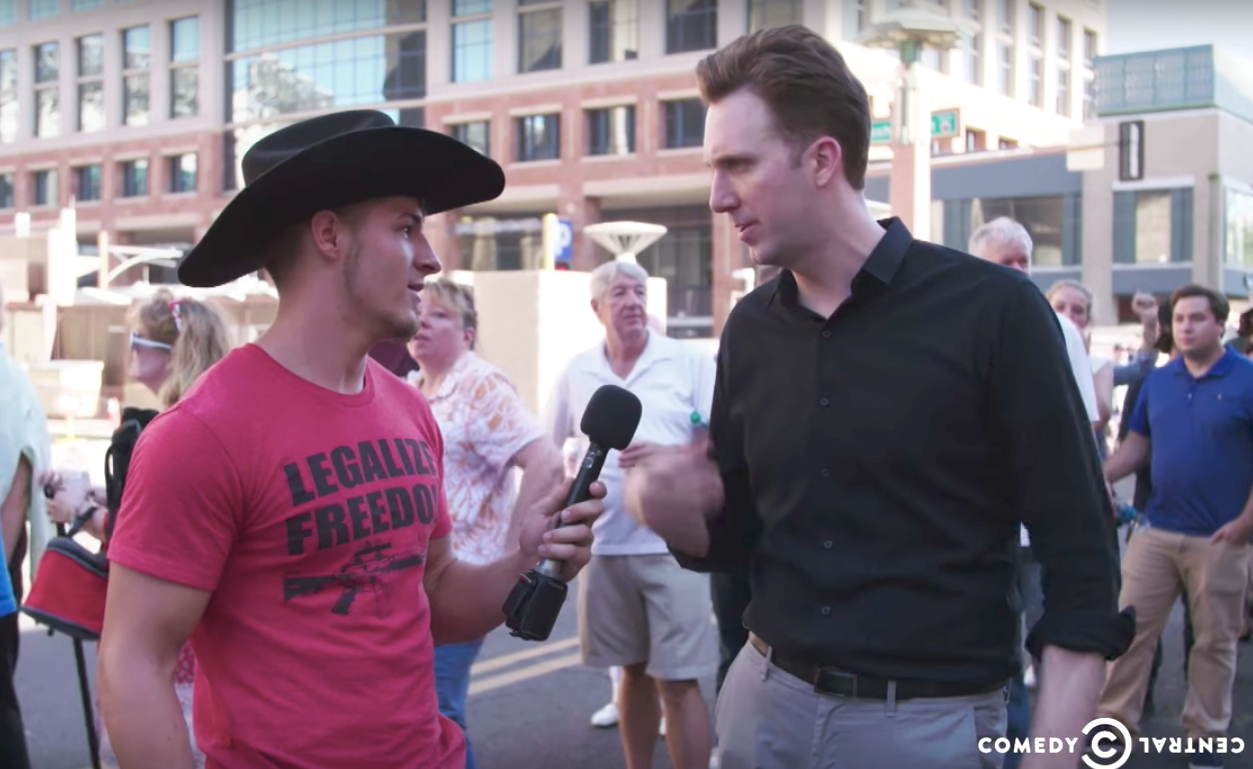 Comedy Central's Jordan Klepper talks to a Trump supporters (Screen capture)