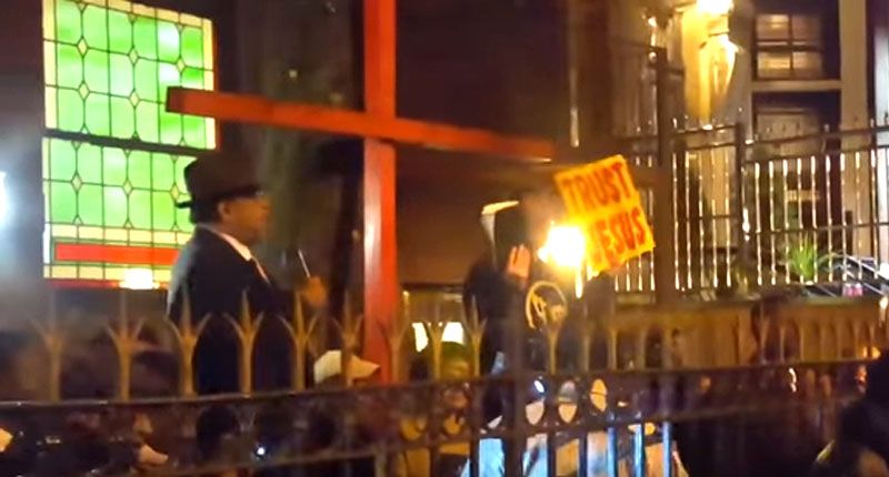 Pastor James David Manning and his supporters outside the church (Screenshot)