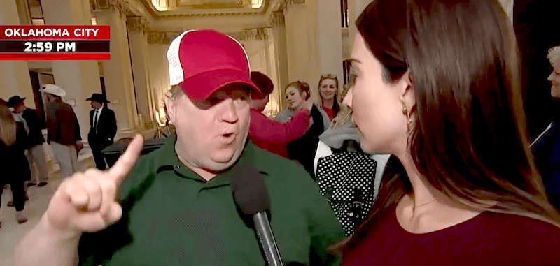 An Oklahoma Republican who works as a teacher and who joined protests at the statehouse/Screenshot