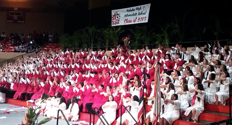 Graduating seniors of Kahuku High School's class of 2015 surprised family and friends with an impressive music and dance performance they learned in only two days. The event, captured by MoStreetProductions, has been seen by more than 2.5 million YouTube viewers at this writing.
