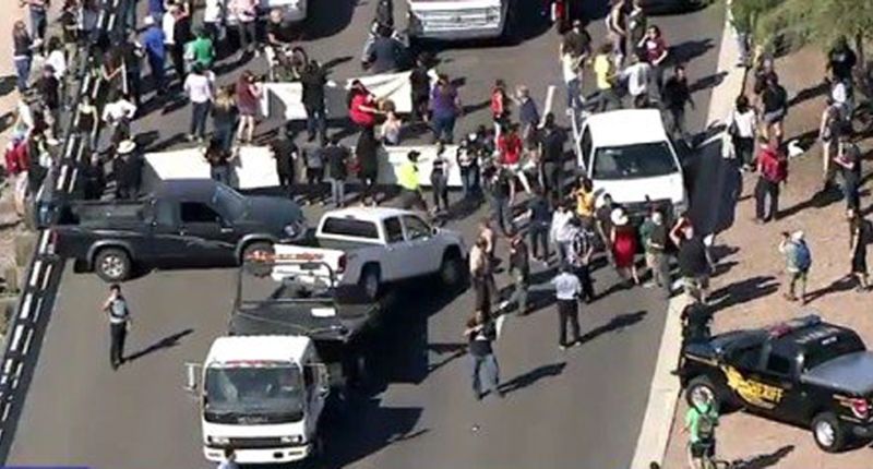 According to AZCentral, protesters lined up early, stopping traffic on the eastbound lanes of Shea Boulevard, the main route into the Phoenix suburb.