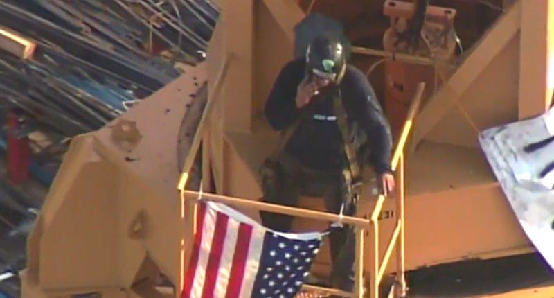 According to local news outlet WSVN, the man was wearing a helmet, climbing gear and straps. He displayed a banner and American flag.