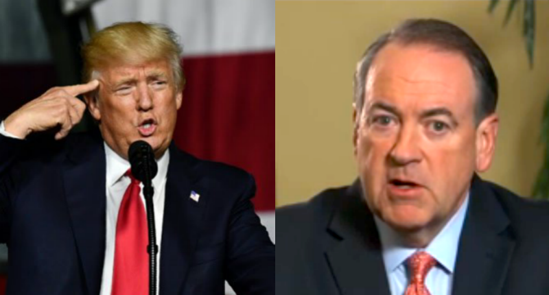 President Donald Trump (left, AFP) and former AK Gov. Mike Huckabee (right, via screengrab).