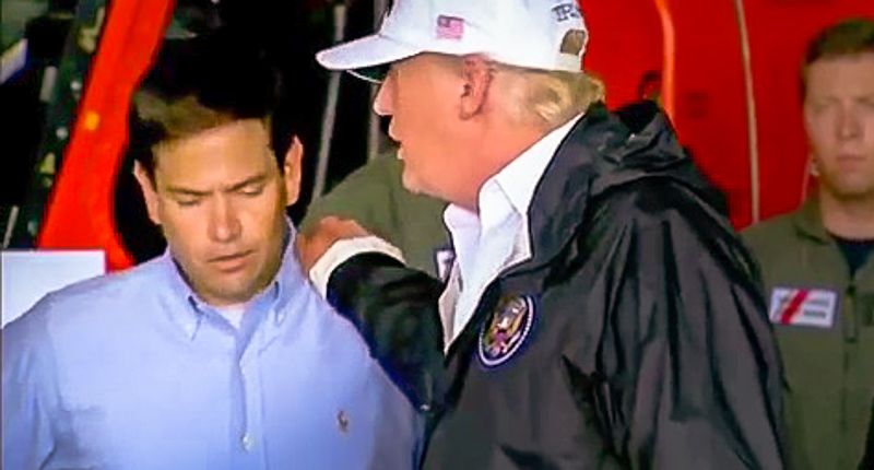 During a tour of Florida's damage from Hurricane Irma, Trump took time out to praise Sen. Marco Rubio (R). But Rubio appeared to cringe and grimace slightly when Trump tried to touch his shoulder.