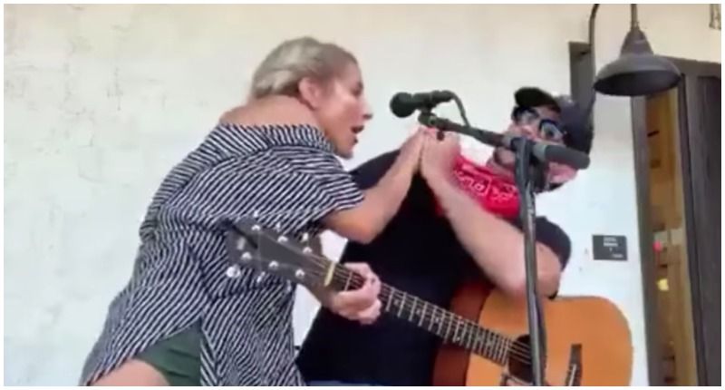 During his outdoor show, Texas musician Clayton Gardner had a woman approach him and request a song. But she was a little too close to him for comfort and has asked her to make her request from seven feet away. But as the Dallas News points out, she instead grabbed his bandana and seemingly tried to cough on his neck.