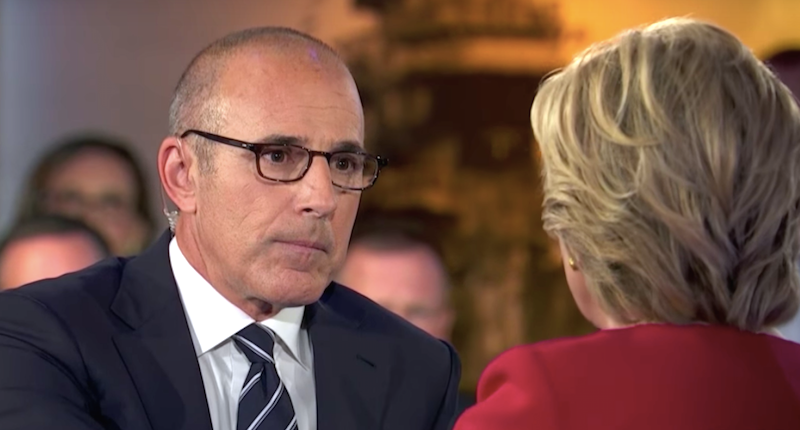 Lauer was pilloried by professional critics and social media users alike for opening the Sept. 7, 2016, debate -- which was hosted by a veterans group and ostensibly focused on national security -- by asking Clinton about her emails.