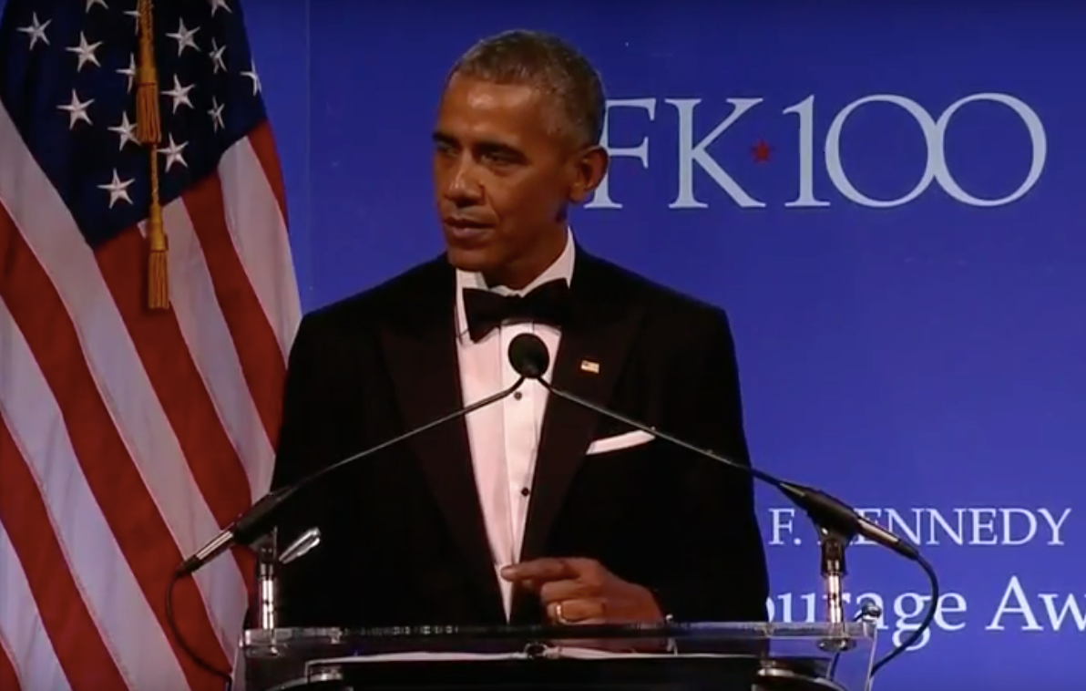 Former President Barack Obama accepts the Profile in Courage Award (Screen capture)