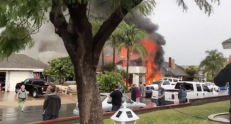 Plane or helicopter crash in a Yorba Linda, California neighborhood (Photo: Screen capture)