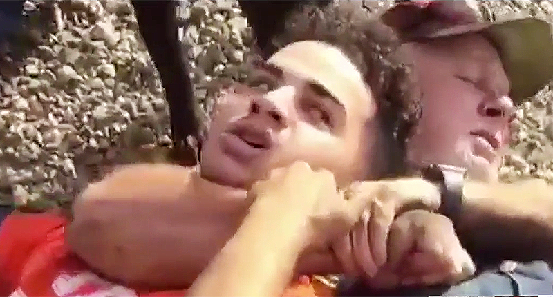 Christian Heath being choked by friend of tow truck owner Paul Hulbert (Photo: Screen capture)