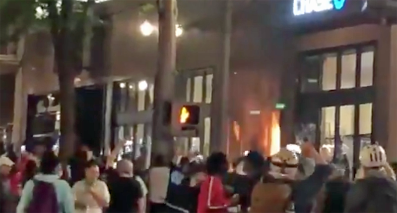In Portland, protesters cheered when a Chase Bank location was burned.