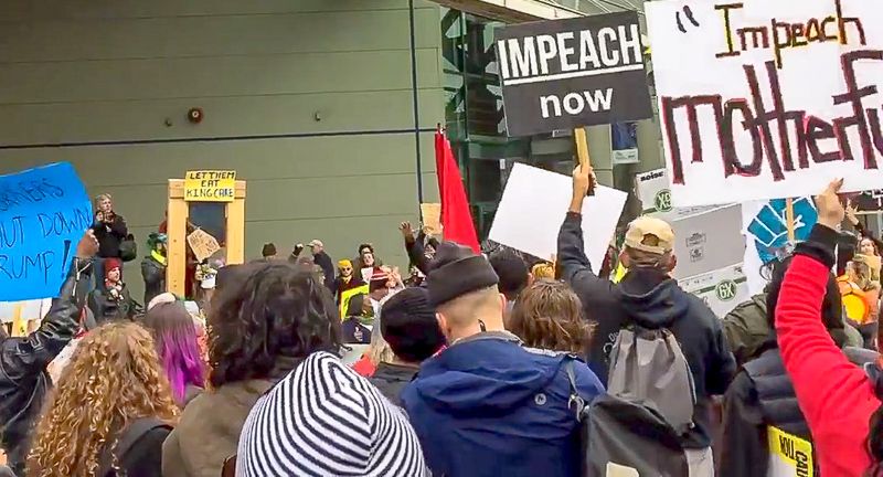 Protesters chant "lock him up" as Trump speaks in New Orleans (Twitter)