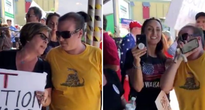 The video recorded and posted by Twitter user @ARAEveryDay at the Broward County Supervisor of Elections office in Lauderhill, Florida describes the women as "haranguing" them as they held an Andrew Gillum shirt at the rally.