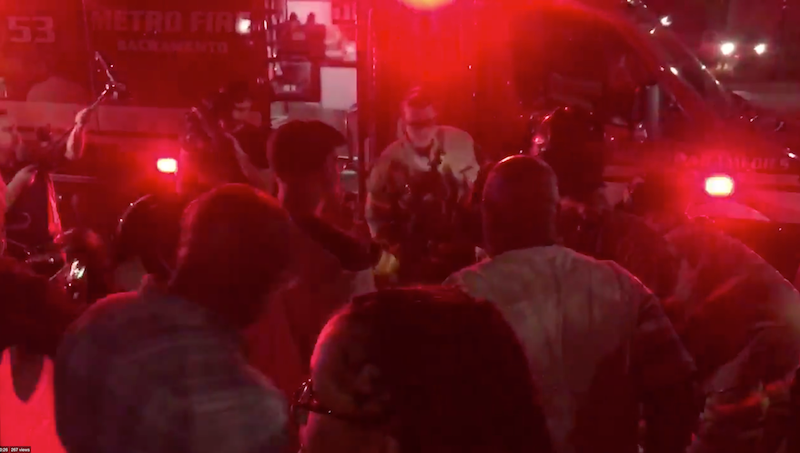 "The father says the woman was standing in front of the vehicle as protesters tried to break out the windows of the sheriffs Deputy’s vehicle," says Sacramento reporter Bob Moffitt of Capital Public Radio News.