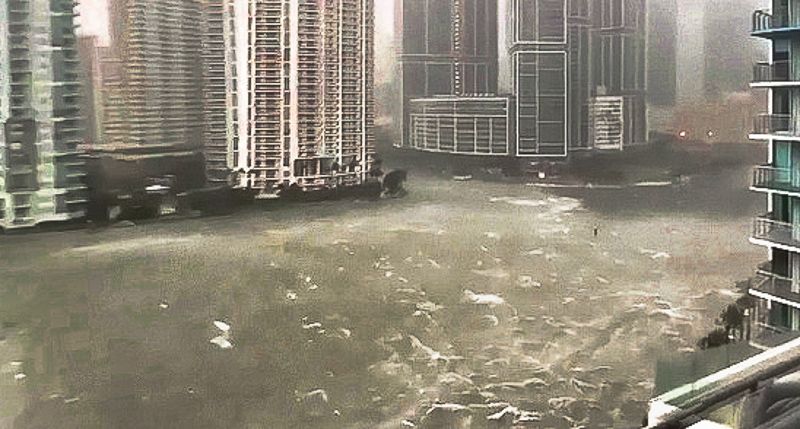 Video posted on Sunday showed skyscrapers bordering the Miami River being flooded as Hurricane Irma made landfall.