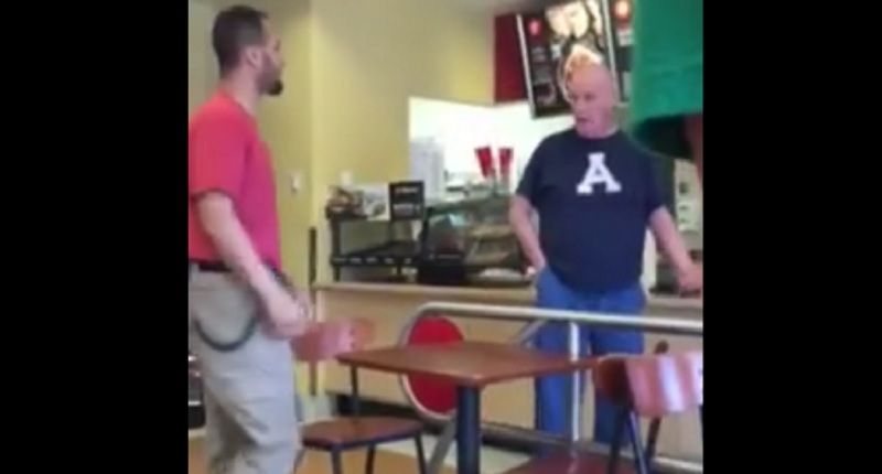 A man can be seen standing at a food counter and yelling people who are defending Maher, who at one point begins crying.