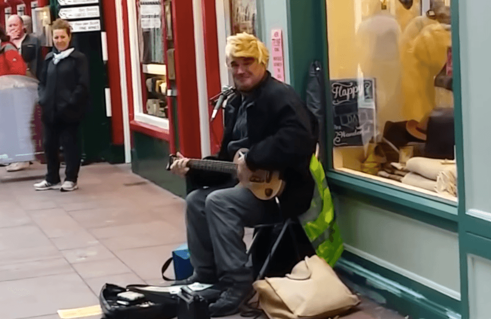 A folk singing Scottish street performer in Killarney, Ireland named Eric Gudmunsen performed a song he wrote for Republican presidential nominee Donald Trump and a group of tourists caught the serenade on video.