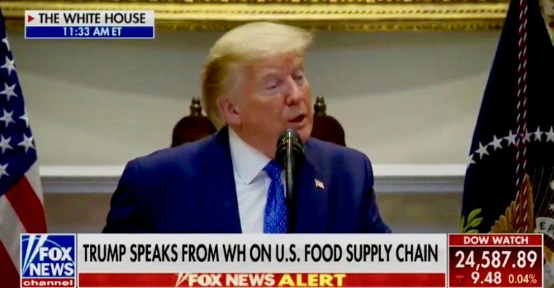 President Donald Trump held a small official White House ceremony Tuesday to announce he's handing America's farmers and ranchers even more cash – this time in the form of a $19 billion bailout he says is because of the pandemic, not mentioning his disastrous trade war with China.
