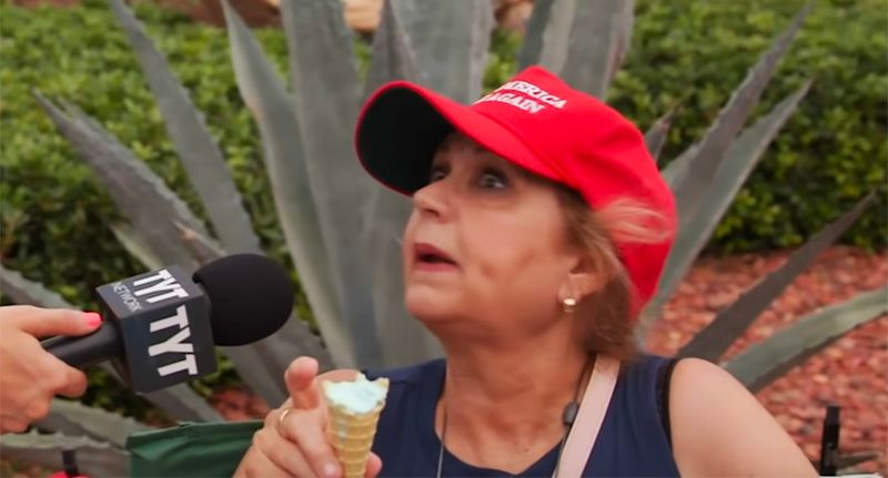 In a video created by the Young Turks, an unidentified woman blew up at the mention that President Donald Trump once said he could shoot someone on 5th Avenue and his fans -- like her --wouldn't care.