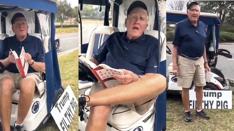 "When he said he likes to grab women by the p*ssy," the man replied, standing up from his golf cart he was sitting in.