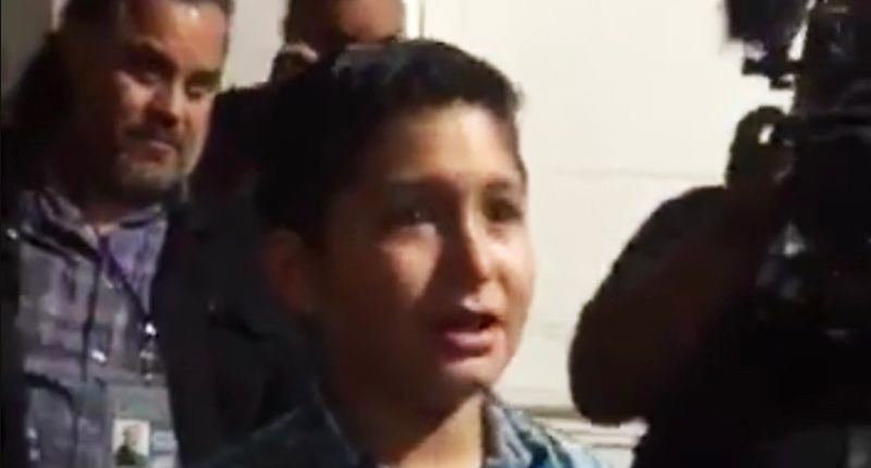 Twelve-year-old Joseph Moreno successfully debated a supporter of Donald Trump outside of a city council meeting in Huntington Park, California (screengrab)