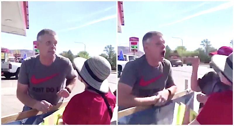 In an incident that was captured on video near a Utah gas station, a man can been seen angrily confronting Black Lives Matter protesters, and then intentionally coughing in their direction.