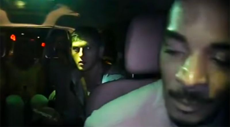 That is when the driver leaves the car and the passengers exit, where a contentious argument can be barely be heard with the driver accusing them of being racists.
