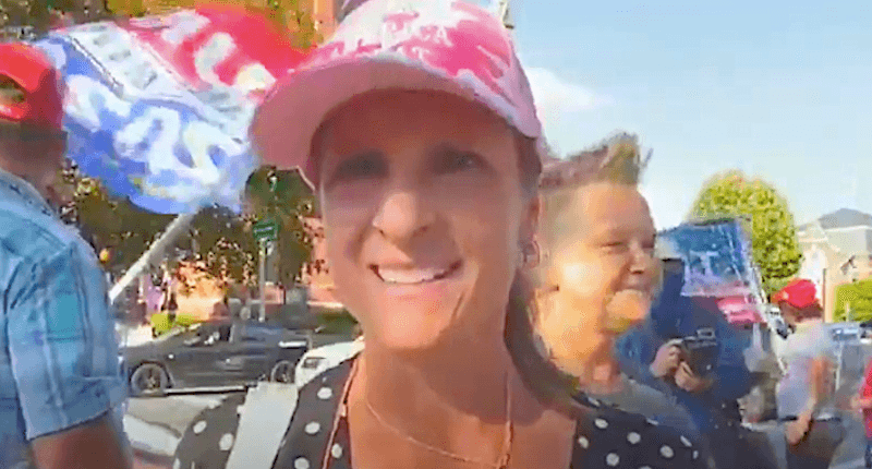 Diana Ploss, a former conservative radio host, recorded Facebook Live video of herself confronting protesters when one of them played the song, "F*ck Trump," by YG and Nipsey Hussle.