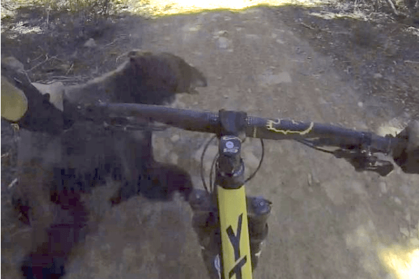 WATCH: Wandering bear sends mountain biker flying – then quickly disappears