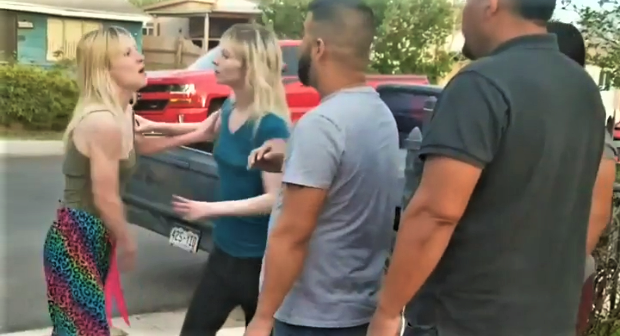 In a video posted on YouTube by a user named Carlos Ruiz, two young white women are shown getting into a physical altercation with one of their Latino neighbors.