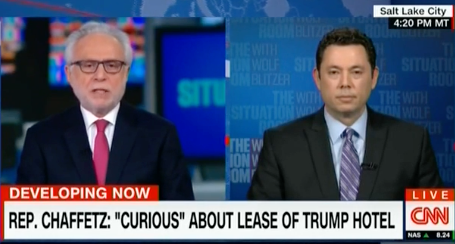 CNN’s Wolf Blitzer on Wednesday hammered House Oversight Committee Chairman Jason Chaffetz over Donald Trump’s potential conflicts of interest, at one point reminding the Republican leader that his responsibility is to serve as a check-and-balance for the president.