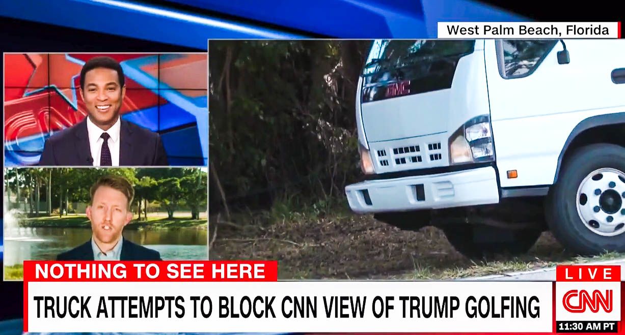 This time, however, someone had parked a massive white truck in front of the clearing the CNN used earlier this week to get Trump golfing footage -- thus blocking the cable news network from getting any new video.