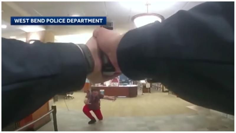 Bodycam footage shows police enter the West Bend Community Memorial Library and arrest the man, who admitted he had four box cutters in his backpack, without incident.