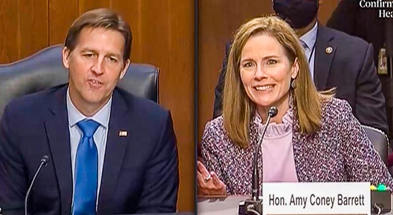 Ben Sasse and Amy Coney Barrett appear at Senate Judiciary Committee hearing (PBS/screen grab)