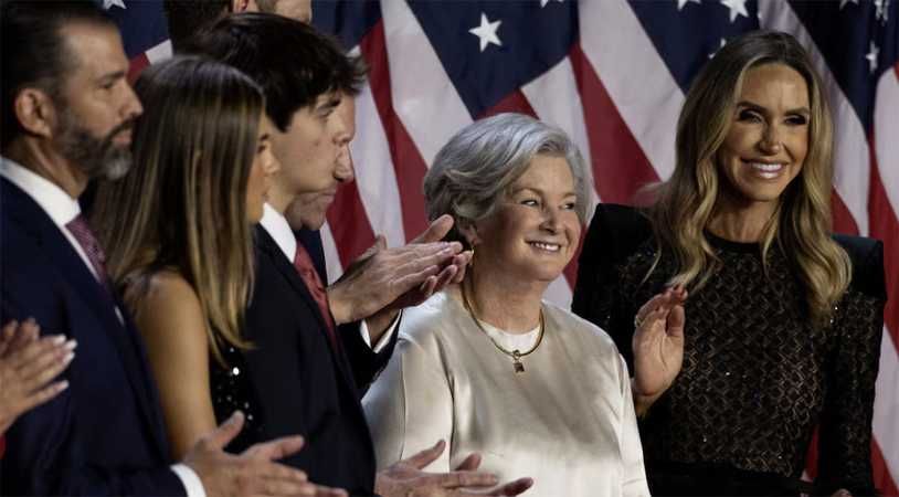 White House Chief of Staff Susie Wiles surround by Donald Trump Family members (Photo bu Carlos Barria for Reuters)