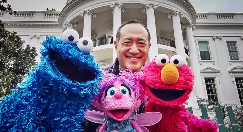 Takamitsu Muraoka appears with Muppet characters at a White House Easter Egg Roll (White House)
