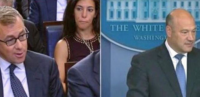 CNN's Jeff Zeleny (left) and White House economic adviser Gary Cohn (right). Image via screengrab.