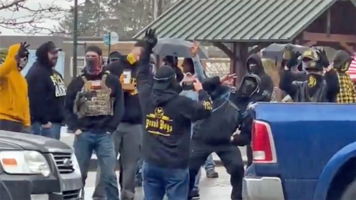 "To use one of their phrases, 'The mask slips,'" Squire said. "Underneath, they are who they are, and this is who they are. The question is, were the Proud Boys always that way or did it happen halfway through? A lot of times these guys will say, 'You pushed us to this, with all the de-platforming.' That's patently false. The history is the Proud Boys have been promoting very thinly veiled white supremacy. They called it 'Western chauvinism.' It's white supremacy — shocker. Now, we can call it what it is, and they can call it what it is."