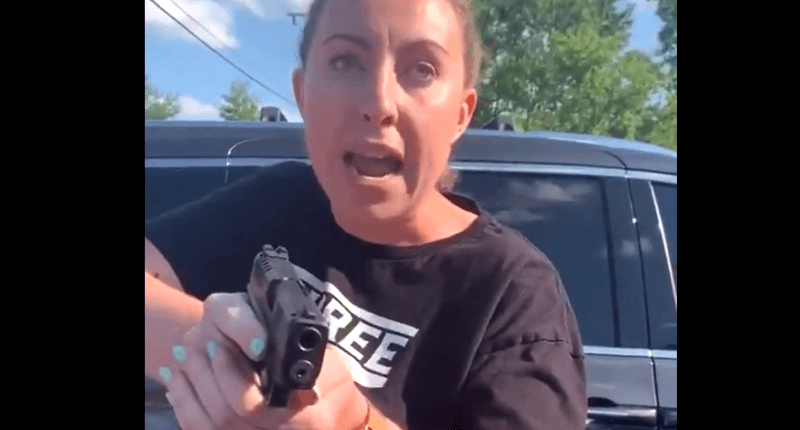 According to the poster, the woman who brandished the gun was arrested but later released.