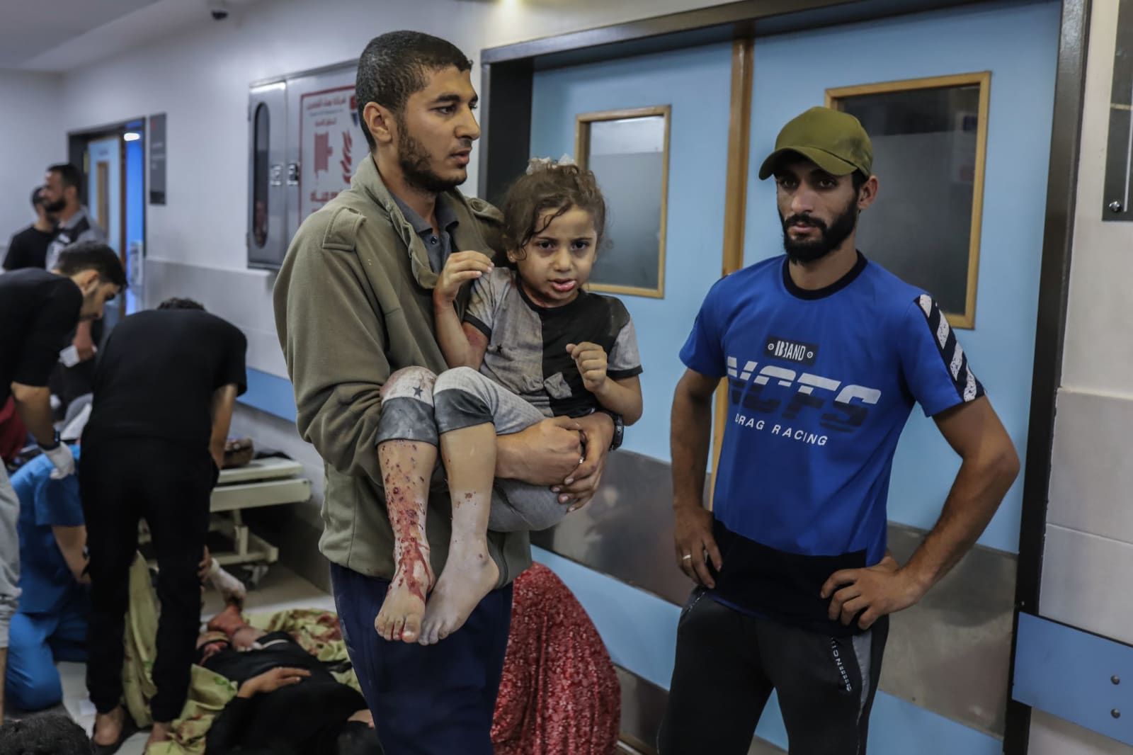 A Palestinian brings a wounded girl to Al-Shifa Hospital, amid the ongoing conflict between Israel and the Palestinian group Hamas. Mohammad Abu Elsebah/dpa
