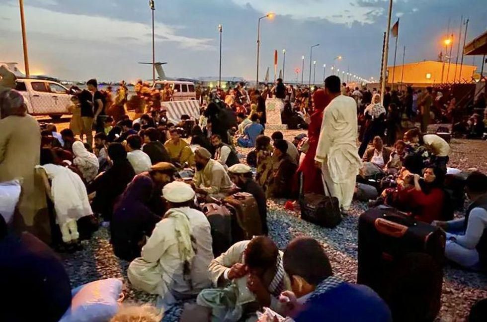 Afghans wait to board a US military aircraft to leave Afghanistan at the airport in Kabul on August 19, after the Taliban takeover of the country(AFP)
