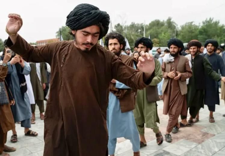 Many Taliban fighters gathered in Kabul's central Massoud Square, where they displayed the regime's white banners and performed a traditional dance(AFP)