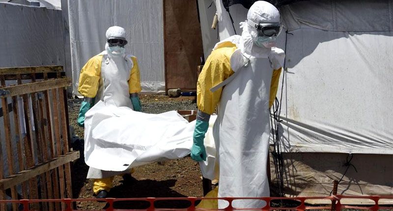 Medical staff carry the body of an Ebola victim at the Medecins Sans Frontieres center in Monrovia on September 27, 2014 (AFP Photo/Pascal Guyot)