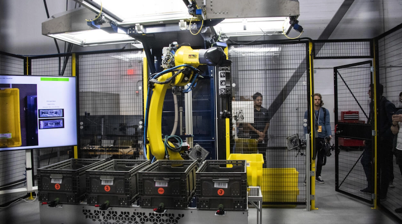 At Amazon's robotics laboratory on the outskirts of Boston, Massachusetts, the company's newest automaton "Sparrow" picks out items to be shipped to customers, displaying human hand-like dexterity.