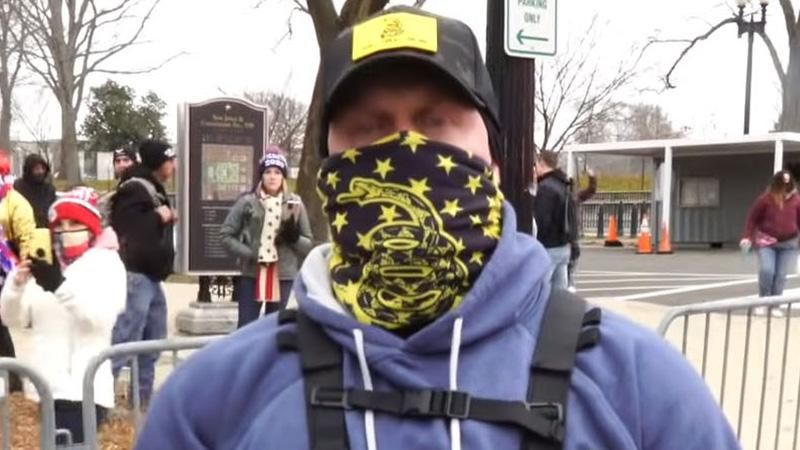 Mellors wore a blue sweatshirt with multiple patches, including one depicting an assault rifle with the words “Black Guns Matter” and another depicting with the words “I pull out” next to the pin. He told FBI investigators he had met members of the Proud Boys at a Trump rally in November, but the report did not describe him as a member.